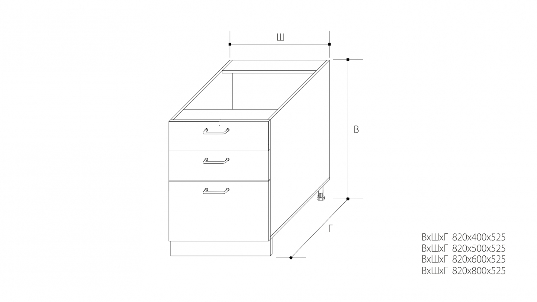 ВхШхГ: 820х500х525 мм.